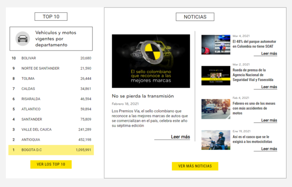 El sitio web incluye consejos para una conducción más segura y las últimas noticias relacionadas con marcas, seguridad y transporte. Además, las diez causas de choques simples más comunes en nuestras vías y el comportamiento de la accidentalidad mensual.